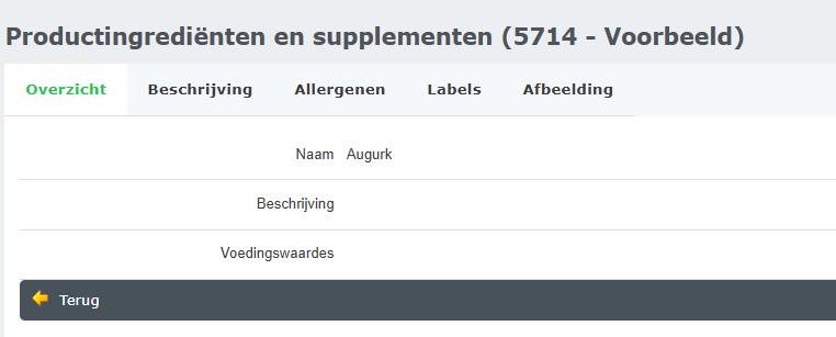 - Beschrijving: vul hier de gewenste beschrijving en voedingswaardes in met eventueel de vertaling.