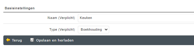 - 3. Als je de gegevens van de productgroep hebt ingevuld, klik je op 'Opslaan en herladen'. Klik op 'Opslaan en herladen' zodra je de groep hebt ingevuld.