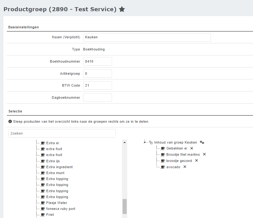 - 4. Koppel nu producten aan de groep: links zie je de producten, die sleep je naar rechts naar de juiste groep.